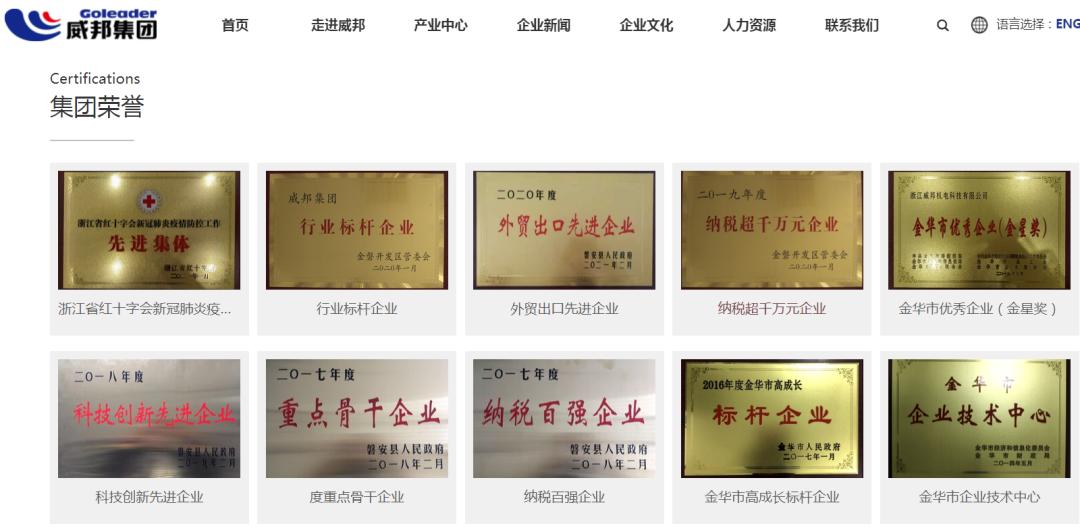 集團(tuán)榮譽(yù) 圖源:威邦集團(tuán)