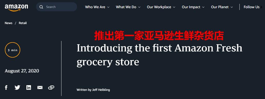 反觀亞馬遜,深知沃爾瑪雜貨電商發展很大程度上是依靠其強大的線下實體網絡,于是亞馬遜也開始大搞生鮮雜貨,先是收購生鮮連鎖超市Whole Foods,后又推出自營雜貨超市Amazon Fresh。