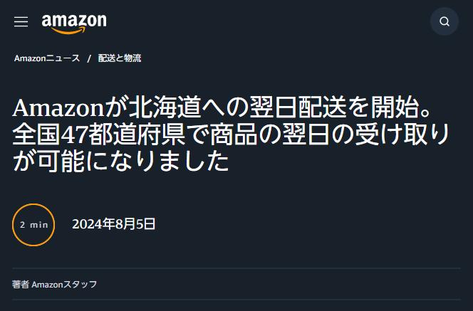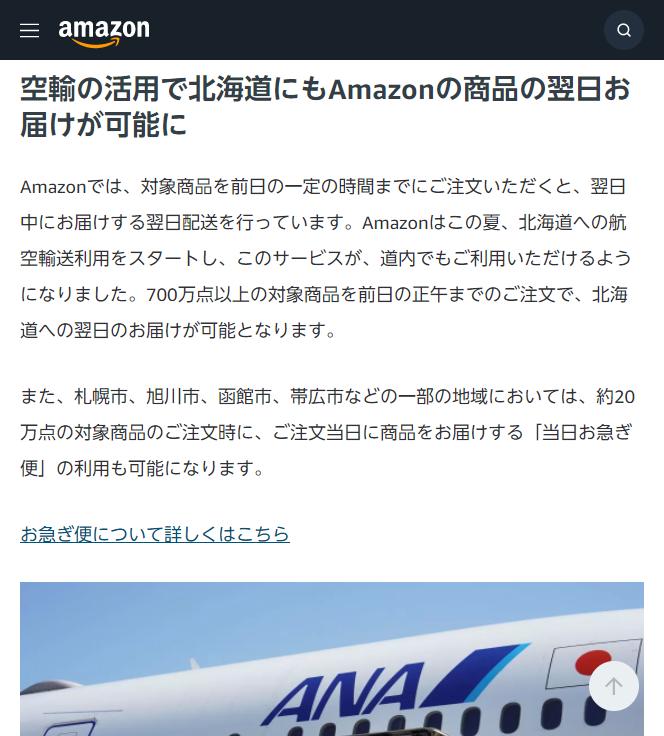 8月6日消息,亞馬遜日本站宣布將在北海道使用空運(yùn)服務(wù),使得次日送達(dá)成為可能。亞馬遜計(jì)劃利用羽田-新千歲航線的客機(jī)空貨艙,每月運(yùn)送數(shù)十萬件商品。通過此舉,北海道(不含偏遠(yuǎn)島嶼)的客戶在前一天中午之前下單,便能在次日收到商品。此外,札幌、旭川、函館、帶廣等北海道部分地區(qū)還將提供當(dāng)日達(dá)服務(wù),覆蓋約20萬件符合條件的商品。