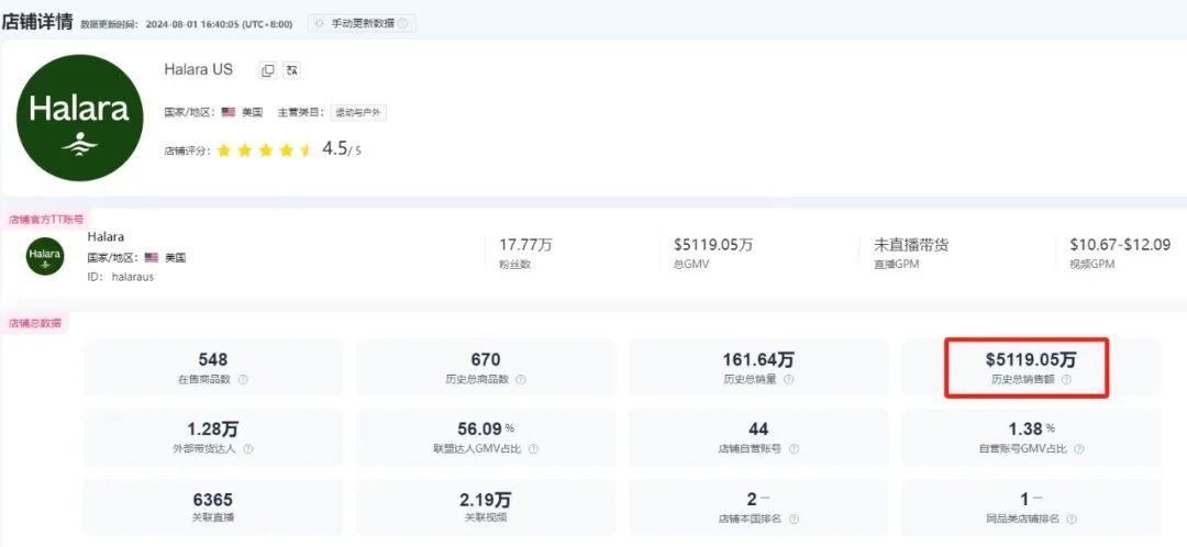說到Halara,相信大家并不陌生,近段時間這個品牌可以說是相當火熱,畢竟在TikTok的運動與戶外類目下,Halara US已經連續4個月蟬聯熱門小店榜第一的位置,與此同時,Halara還登上了TikTok美區小店休閑女裝類目銷量榜首的位置。