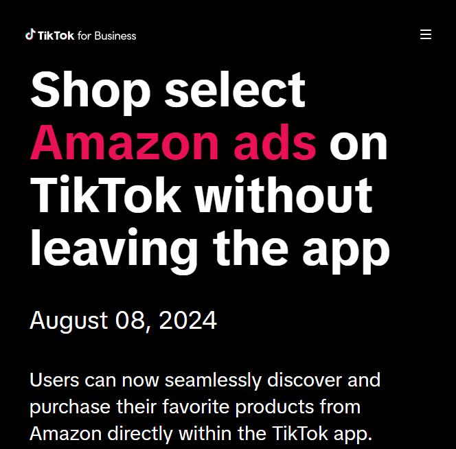文章來(lái)源于互聯(lián)網(wǎng):亞馬遜實(shí)現(xiàn)TikTok應(yīng)用內(nèi)購(gòu)物