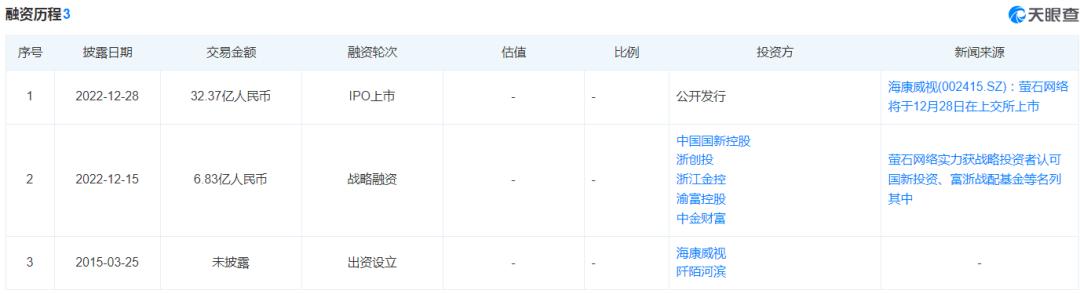 是金子總會(huì)發(fā)光的,螢石網(wǎng)絡(luò)精彩的表現(xiàn)使其得到了資本市場的青睞。2022年底,螢石網(wǎng)絡(luò)正式登陸上海交易所科創(chuàng)板,一舉成為科創(chuàng)板“智能家居第一股”。截至上市,螢石網(wǎng)絡(luò)已經(jīng)拿下了多次融資,IPO上市融資金額甚至高達(dá)32億人民幣,此前的戰(zhàn)略融資也拿到了6.83億人民幣。