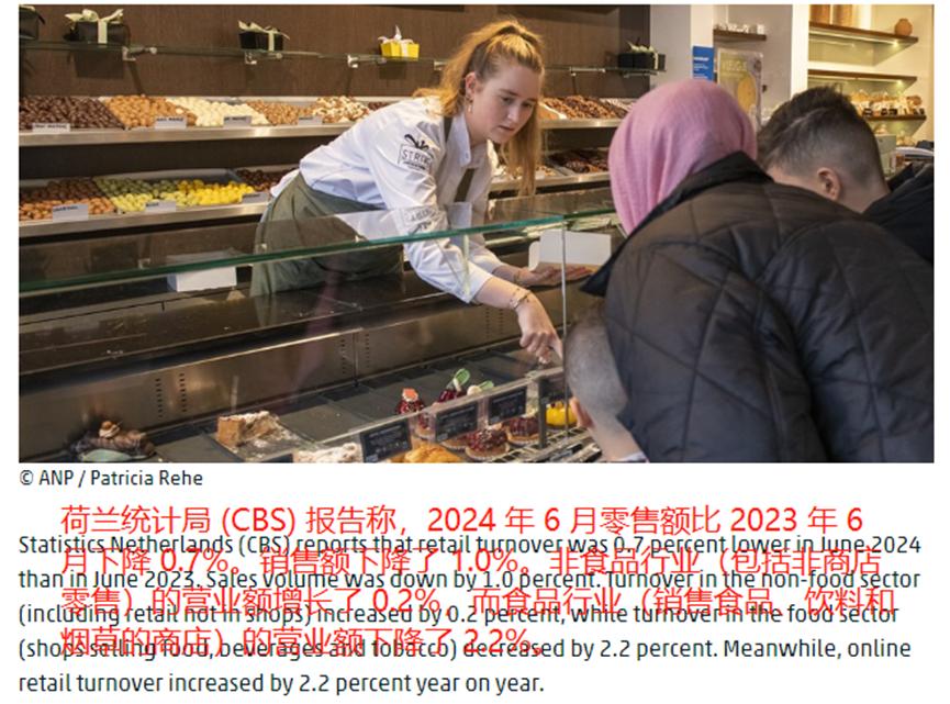 近日,據(jù)媒體報(bào)道,荷蘭統(tǒng)計(jì)局(CBS)公布了一份關(guān)于荷蘭零售市場(chǎng)的研究報(bào)告。報(bào)告數(shù)據(jù)顯示,今年6月,荷蘭零售額相較于上一年同期下降了0.7%,銷售額也同比下降了1%。從細(xì)分品類來看,食品飲料品類的營(yíng)業(yè)額同比下降得較為明顯,降幅為2.2%;非食品品類的營(yíng)業(yè)額則同比小幅增長(zhǎng)了0.2%。
