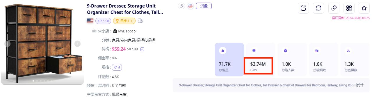 MyDepot爆款產品居家收納柜 圖源:Echotik