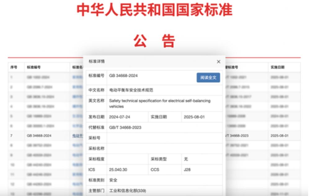 今年7月24日,國家市場監督管理總局(國家標準化管理委員會)發布了由北京機械工業自動化研究所有限公司、九號公司等主導修訂的我國首個電動平衡車強制國家標準,也是我國首個載人電器運輸設備強制性國家標準,并將于2025年8月1日正式施行。