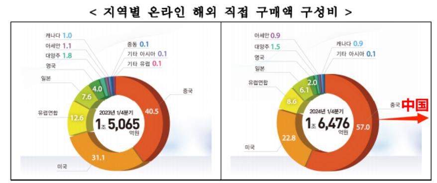 2024Q1中國商品交易額占比57% 圖源:kostat.go.kr