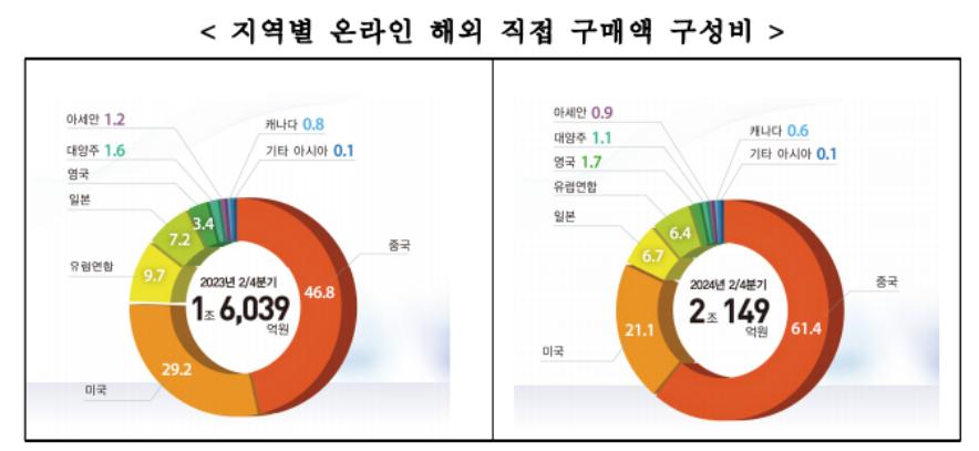 近日,韓國統計局發布最新韓國海外直購趨勢報告,數據顯示,2024年第二季度韓國消費者海外直購總額超2萬億韓元其中61.4%都來自中國。這不僅標志著韓國海外直購規模首次突破2萬億韓元大關,同時也是中國商品交易額占比創下的歷史新高