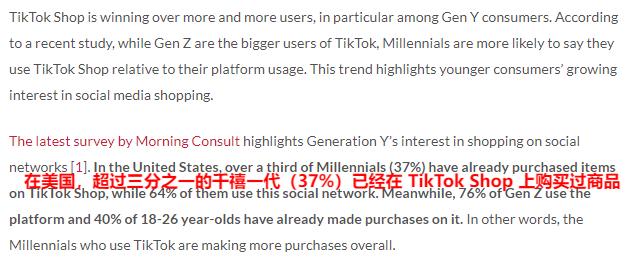 國(guó)際信息咨詢公司Morning Consult的數(shù)據(jù)指出,高達(dá)64%的千禧一代和76%的Z世代用戶已經(jīng)活躍于TikTok Shop,其中,40%的Z世代用戶已經(jīng)在TikTok Shop上購(gòu)買過商品,緊隨其后的是千禧一代,占比達(dá)到37%。