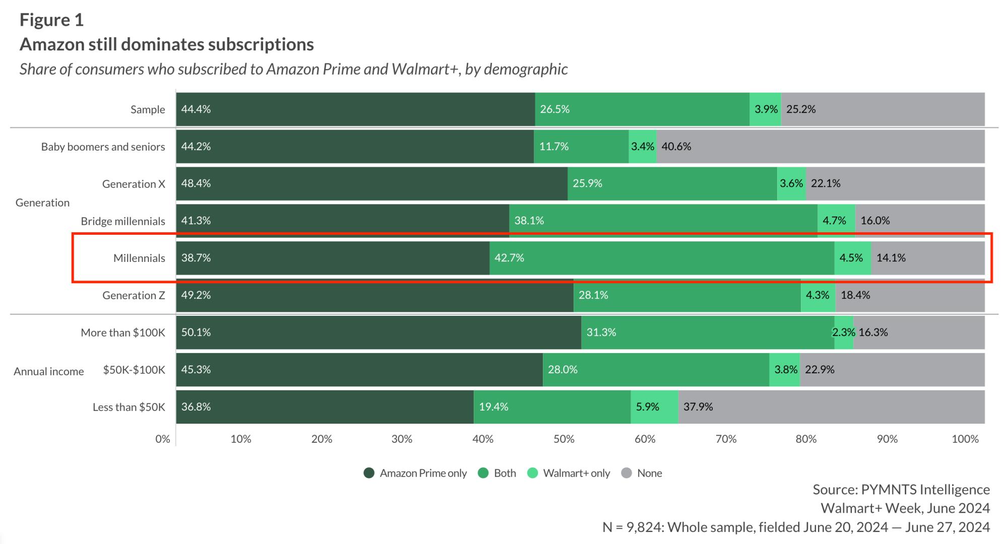 沃爾瑪會(huì)員用戶中千禧一代占比42.7% 圖源:pymnts