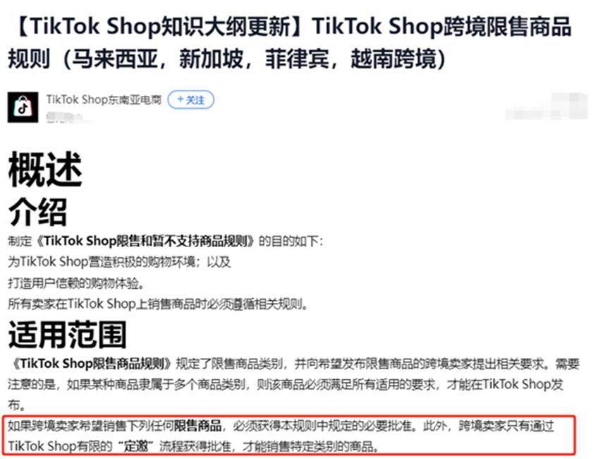 TikTok Shop跨境限售商品規(guī)則更新 圖源:TikTok Shop東南亞電商
