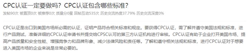 但平心而論,CPC認證提高消費者對賣家產(chǎn)品的信任度和忠誠度,這對賣家的銷售活動而言是有利而無害。所以說,賣家還是應當注意CPC合規(guī)問題,盡量提交正確的證書。
