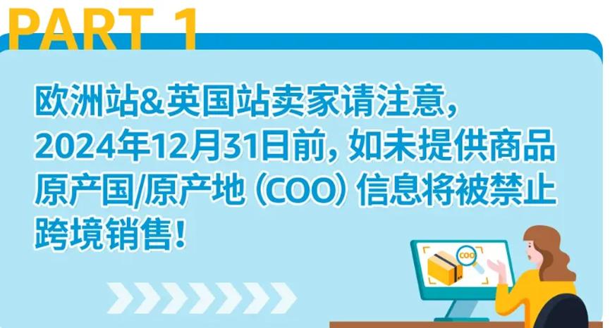 之后不久,亞馬遜也發(fā)布了一個通知,提醒歐洲站點和英國站點的賣家在今年年底之前提交自己商品的COO信息(原產(chǎn)國/原產(chǎn)地信息),否則賣家商品會被標記為不合規(guī),進而對賣家的跨境銷售活動造成不利影響。