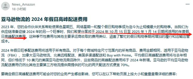 文章來源于互聯網:亞馬遜更新旺季配送費率,多類商品物流成本大漲