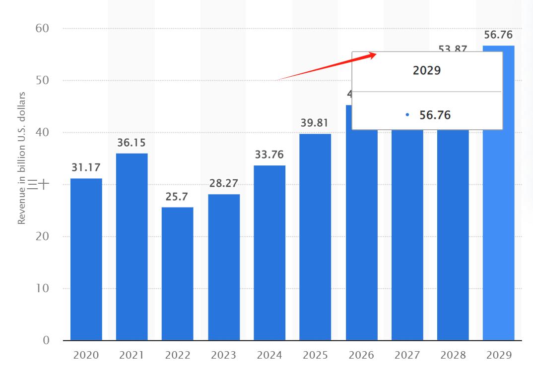 市場(chǎng)規(guī)模持續(xù)增長(zhǎng) 圖源:Statista