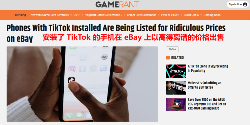 預(yù)裝TikTok的手機(jī)被高價(jià)出售 圖源:gamerant