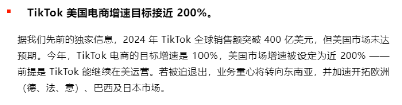 雖然目前,TikTok在美禁令懸而未決,但可以肯定的是,若TikTok能夠通過(guò)合資方案保留在美經(jīng)營(yíng)許可,那么未來(lái)美區(qū)業(yè)務(wù)對(duì)TikTok電商的助力作用將會(huì)更加顯著。