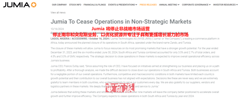 Jumia關閉南非和突尼斯業務 圖源:investor.jumia