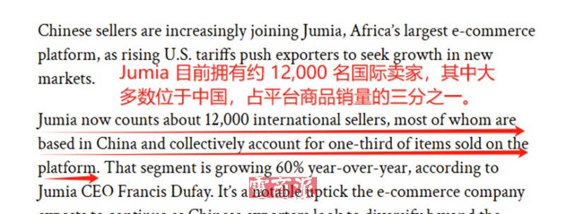 就以Jumia平臺為例,此前其官方發布的一則數據顯示,目前Jumia平臺上已有約12000位國際賣家,其中大多數來自中國,這些中國賣家為平臺貢獻了三分之一的商品銷售額,同時將跨境板塊的年增長率帶動至60%。