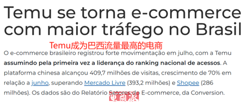 Temu成為巴西訪問量最高的電商平臺 圖源:e-commerce brasil