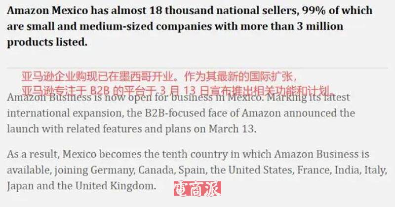 亞馬遜企業購進入墨西哥 圖源:digitalcommerce360