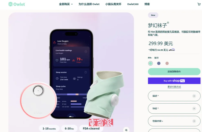 其中,Owlet推出的Dream Sock智能嬰兒襪堪稱(chēng)典型,這款產(chǎn)品通過(guò)柔軟的襪子載體,能夠?qū)崟r(shí)監(jiān)測(cè)嬰兒的心率、血氧飽和度等關(guān)鍵指標(biāo),數(shù)據(jù)也會(huì)實(shí)時(shí)同步至家長(zhǎng)手機(jī)APP,一旦出現(xiàn)異常便立即發(fā)出警報(bào)。