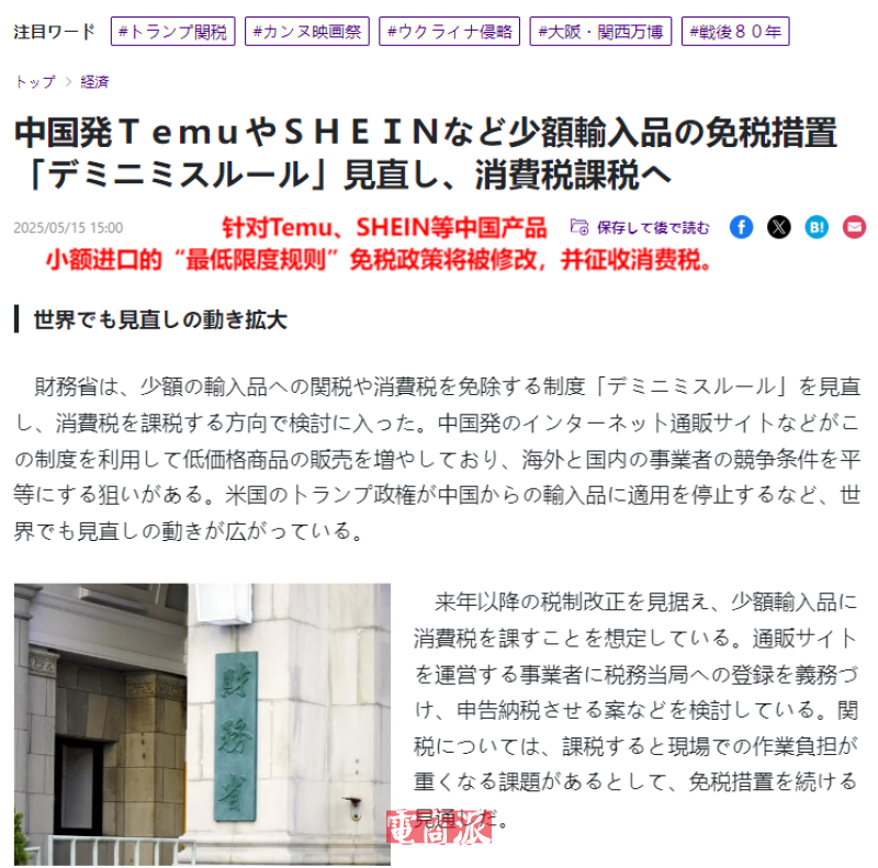 不過,值得關(guān)注的是,今年日本市場釋放出監(jiān)管收緊信號,日本財(cái)政部表示將考慮調(diào)整進(jìn)口小額商品的免稅政策,并對這些商品加收消費(fèi)稅,預(yù)計(jì)2026年將制定出詳細(xì)的稅收新規(guī)。目前,進(jìn)入日本的價(jià)值低于1萬日元(約合人民幣466.32元)的國際商品免征關(guān)稅和消費(fèi)稅。
