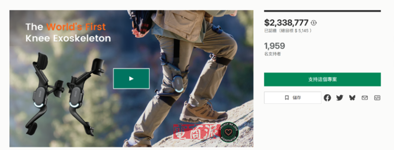 今年9月,北京動思創(chuàng)新科技發(fā)展有限公司旗下品牌Dnsys推出了一款面向戶外徒步場景的外骨骼產(chǎn)品“Dnsys Z1”,這也是全球首款針對膝關(guān)節(jié)的外骨骼設(shè)備。該產(chǎn)品在眾籌階段表現(xiàn)亮眼,共獲得超過1959名支持者,眾籌總額高達(dá)234萬美元(約合人民幣1665.82萬元),展現(xiàn)出強勁的市場認(rèn)可度。