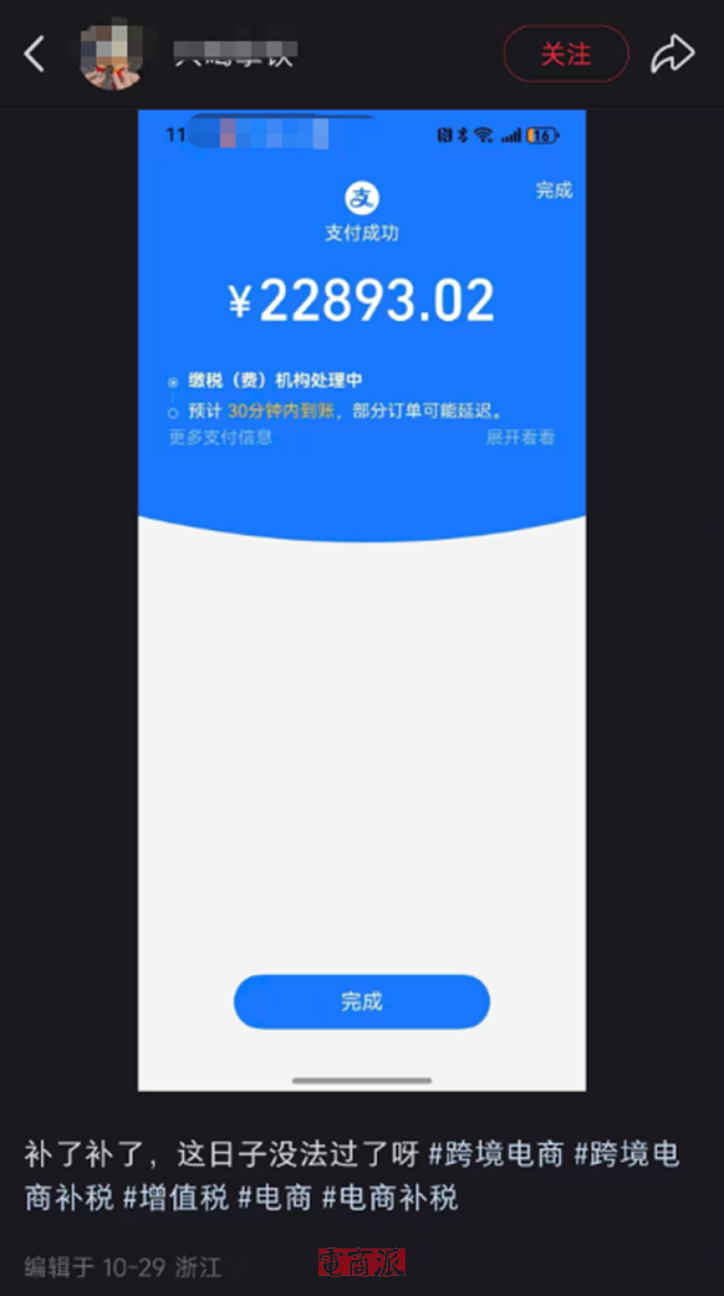一位浙江的跨境賣家曬圖稱自己向稅務局補了2萬多的稅,更有網友表示:“我剛給我們公司算了一下,企稅+增值稅要補600多萬。”