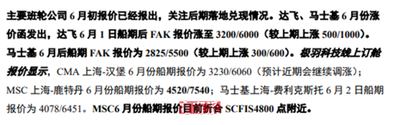 美關稅波動導致6月美線運費大幅推漲 圖源:華泰期貨
